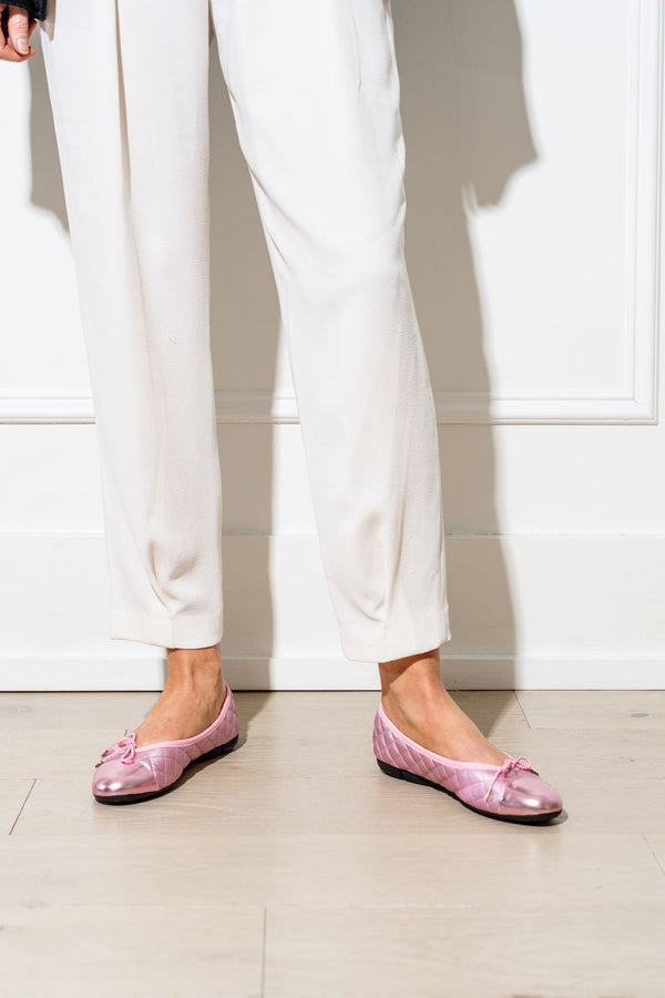 Paul Mayer Women’s Best Quilted Leather Ballet Flat in Metallic Pink