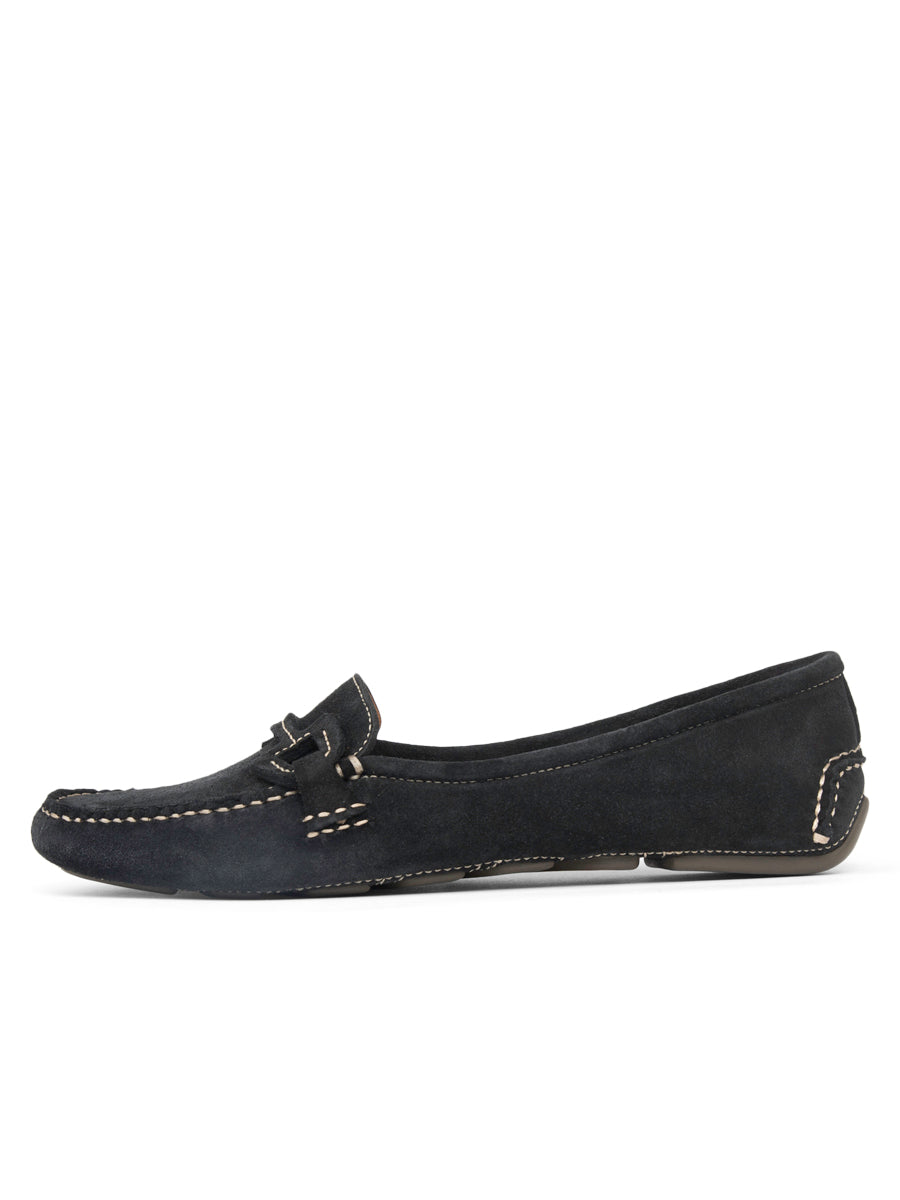 Rich, supple suede creates a flexible and ultra-comfortable hand stitched driving moccasin. A suede tonal horse bit detail with contrast stitching for a luxe finish.