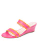 Available in two bold, feel-good colorways—Hot Pink with Orange trim and Sky Blue with Lime trim—the Panama is made for sunny days, vacation strolls, and effortless summer styling. The cushioned leather footbed and walkable wedge make it as practical as it is playful, while the scalloped edges add a whimsical, feminine finish that sets this style apart.