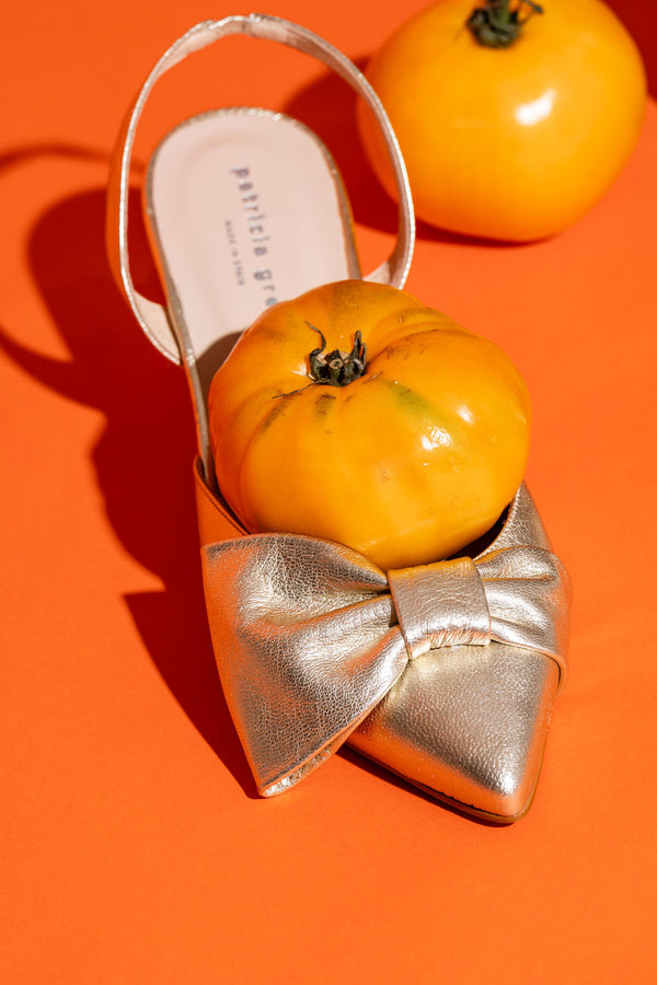 Patricia Green Women’s London Bow Kitten Heel in Gold Leather