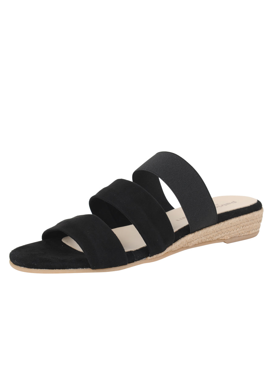 The perfect mini-wedge sandal with three straps, one being elastic for an extra secure fit. Easy to slip-on and off with just the right amount of lift while still being comfortable for all day wear.