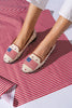 It doesn't get more classic Americana than this! A neutral needlepoint loafer designed with the American flag and finished with whimsical blue and white dots.