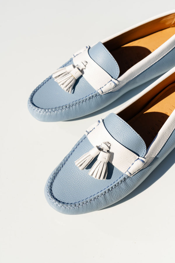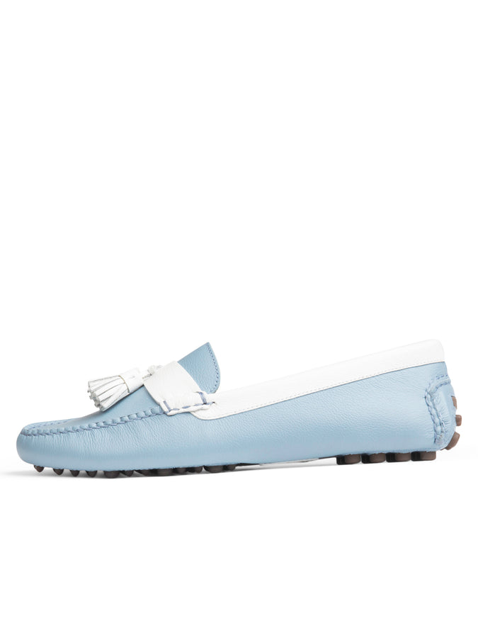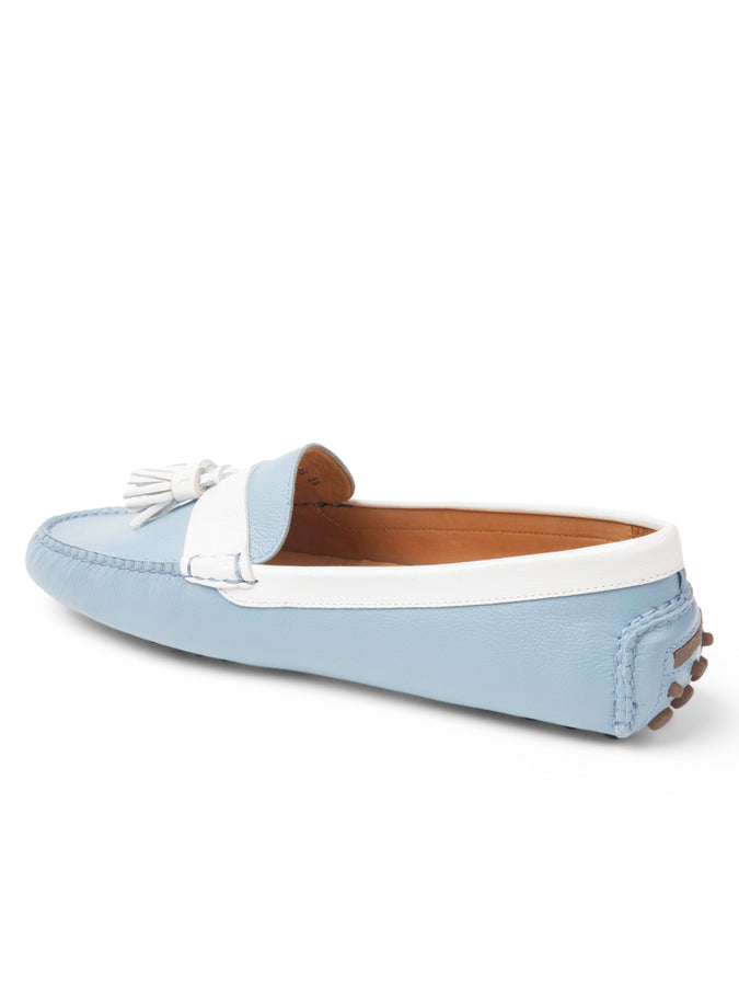 Patricia Green Women’s Jordan Tassel Driver in Sky Blue/White Leather