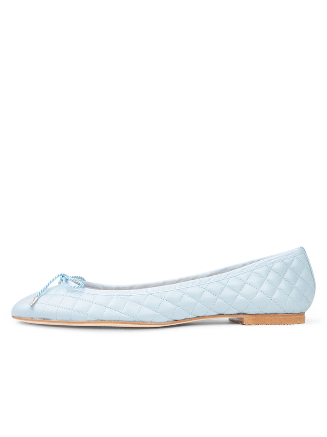 Paul Mayer Women’s Lido Quilted Leather Ballet Flat in Sky Blue Leather