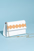 Featuring a bold, scalloped accent in vibrant hues, the Palm Beach Scalloped Clutch captures the essence of coastal chic. Its structured design is as practical as it is eye-catching, with a compact interior to hold your essentials. The detachable gold-tone chain adds versatility, allowing you to carry it as a clutch or wear it as a crossbody bag.