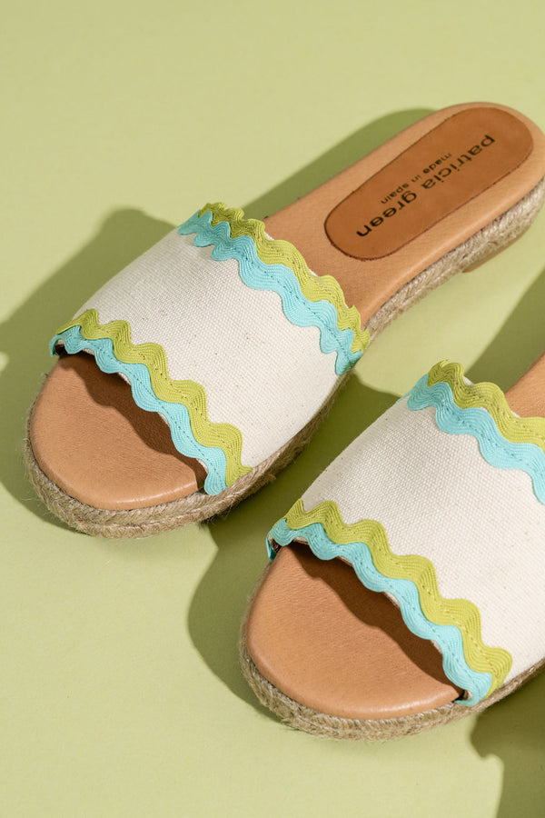 Patricia Green Women’s Ava Ric Rac Slide in Lime/Aqua