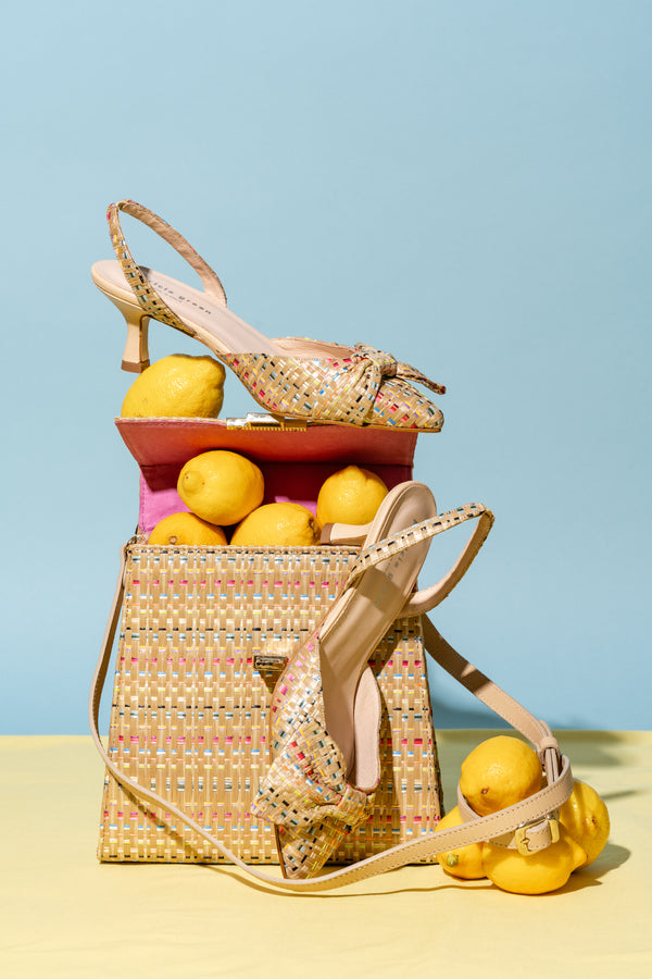 Patricia Green Women’s London Bow Kitten Heel in Rainbow Raffia