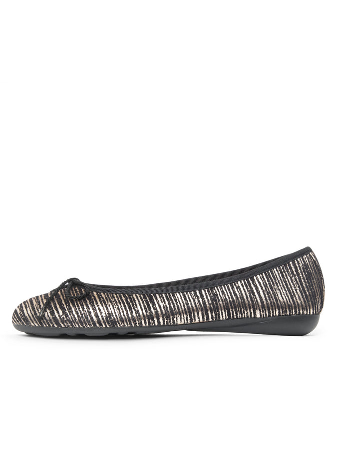 Paul Mayer Women’s Bingo Striped Ballet Flat in Platinum/Black
