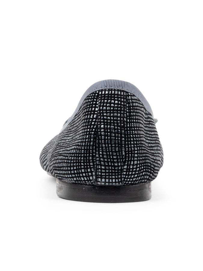 A striking, yet neutral textured leather ballet flat. Finished with our signature feminine bow detailing. The silver and black patterned leather adds just the right amount of eye-catching details while pairing seamlessly with anything and everything.