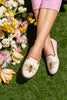 The newest member of the hive! Your favorite bee gets a neutral, wear-with-anything makeover that we know you'll love. A handstitched needlepoint smoking slipper with whimsical designs to fit your every mood. Leather trim and lining.