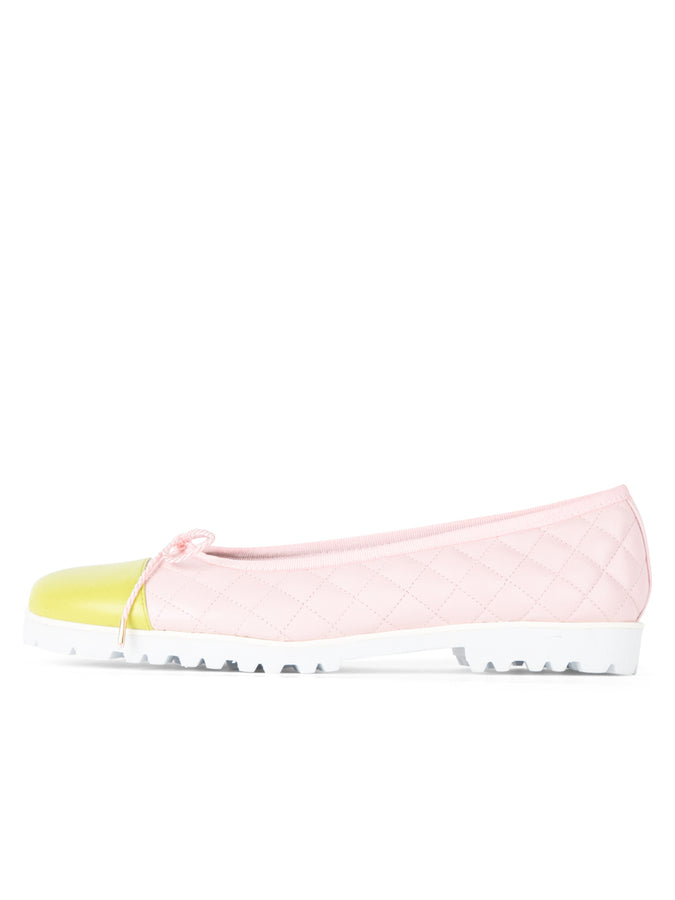 Paul Mayer Women’s Cozy Lug Sole Ballet in Lime Green/Soft Pink