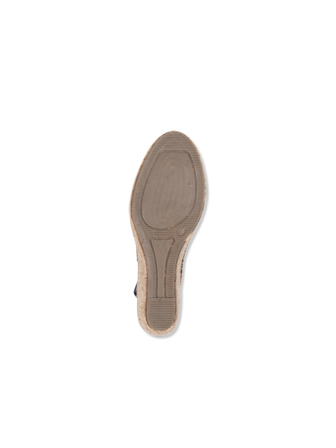 A closed toe espadrille on a low jute wedge with elastic slingback. Handcrafted in Spain by the finest shoemakers. The leathers and materials used to make this shoe are all hand curated by artisans for impeccable fit and quality. Each style is crafted and stitched by hand from a family owned factory.