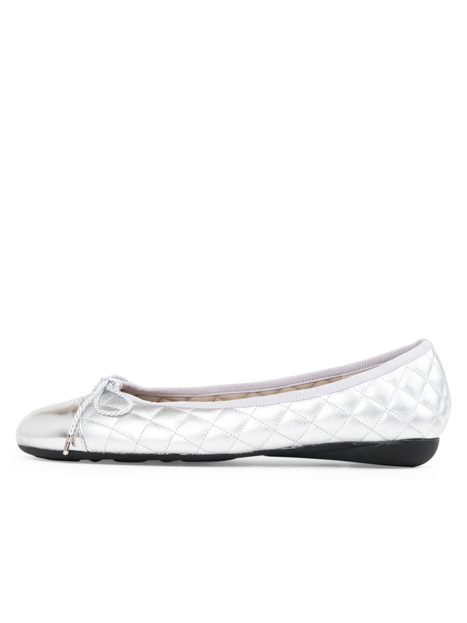 Paul Mayer Women’s Best Quilted Leather Ballet Flat in Silver Mirror/Silver Matte
