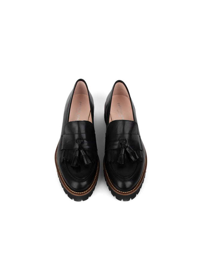 Patricia Green Women’s Beckham Tassel Lug Loafer in Black Nappa