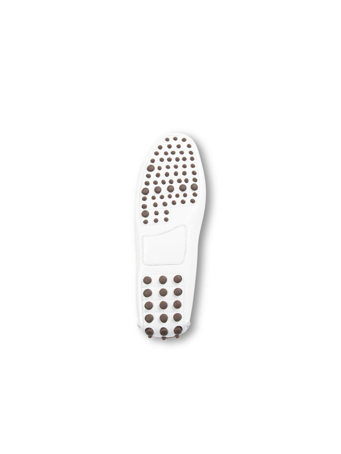 The pristine white finish is versatile and effortlessly complements any outfit, from casual denim to summer dresses. Designed with comfort in mind, the Jordan Driver features a cushioned insole and flexible driver sole, ensuring all-day wearability without compromising on style.