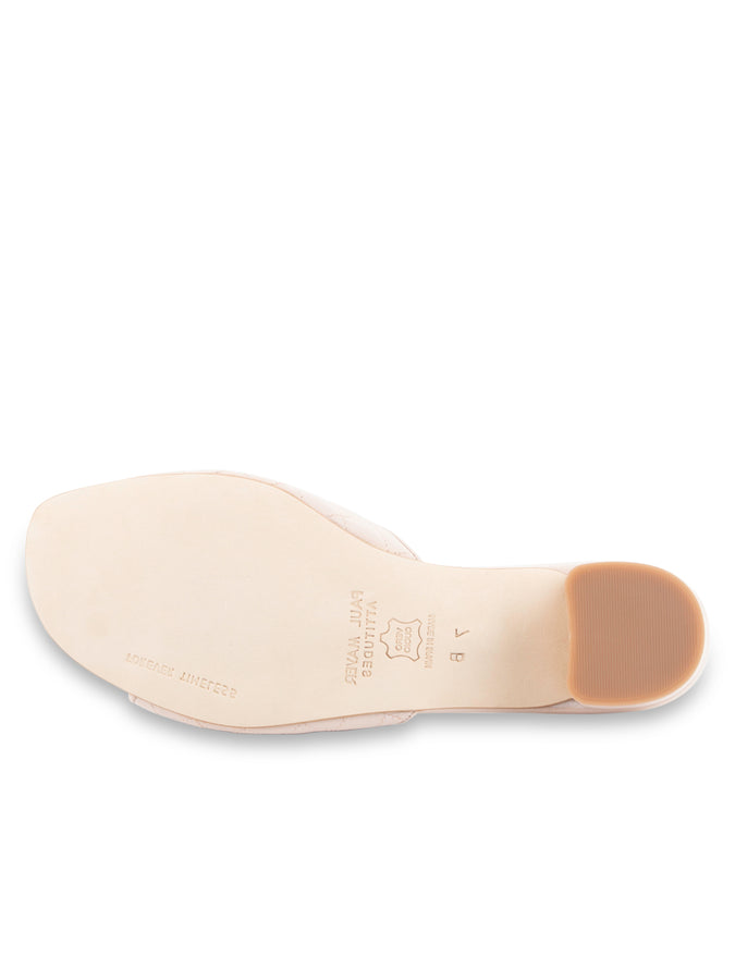 A sculpted quilted leather block heeled slip-on sandal finished with a three dimensional bow. Unparalleled comfort in these stunning Spanish sandals.