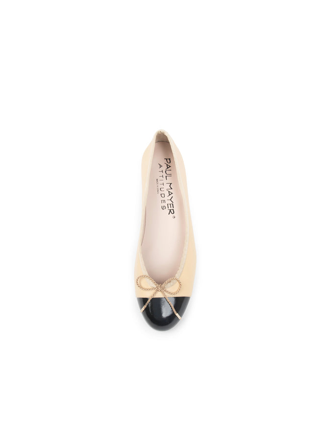 Paul Mayer Women’s Best Ballet Flat in Beige/Black Patent