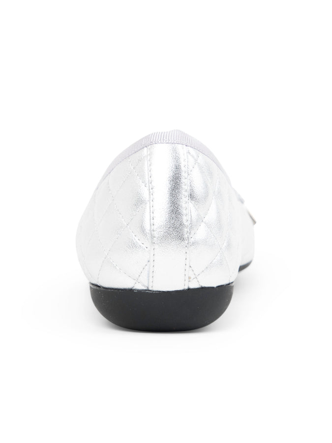 Paul Mayer Women’s Best Quilted Leather Ballet Flat in Silver Mirror/Silver Matte