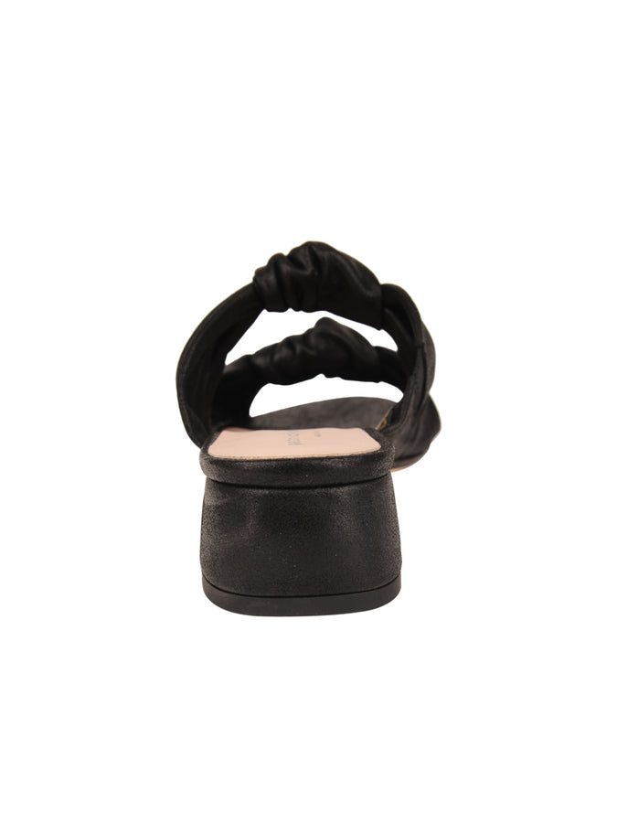 A low heeled block sandal with knotted leather detailing along the straps.