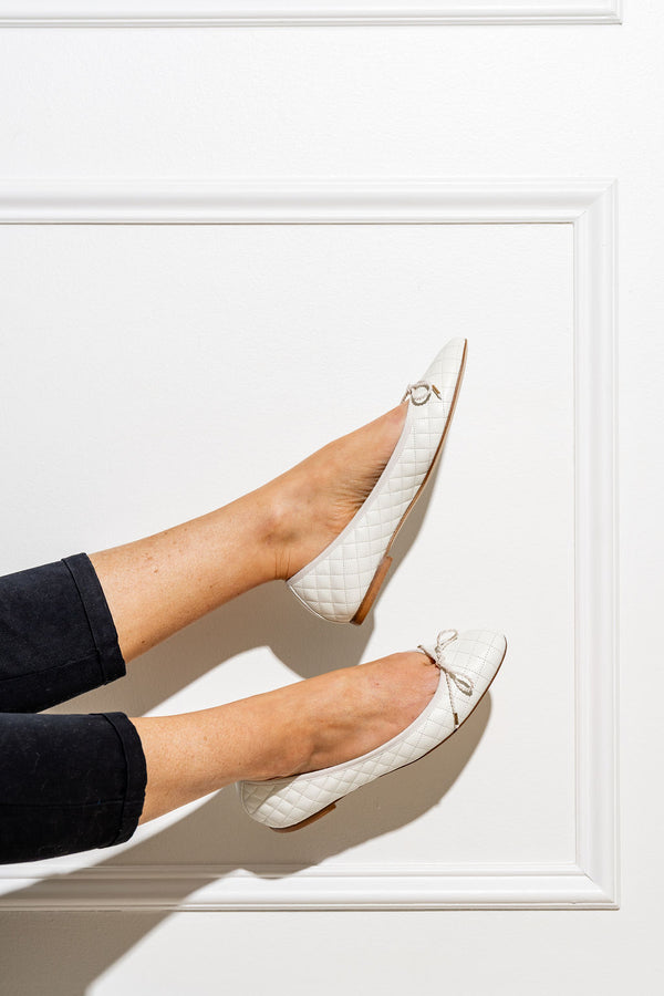 Simply the most timeless, quintessential ballet flat. Seasonless and ageless, the classic quilted leather ballet flat is a must-have shoe in any wardrobe. A tapered cut toe with a little bit of toe cleavage sets this classic ballet apart from the rest. Comfort is unparalleled in this design and we know you'll cherish these for years to come.