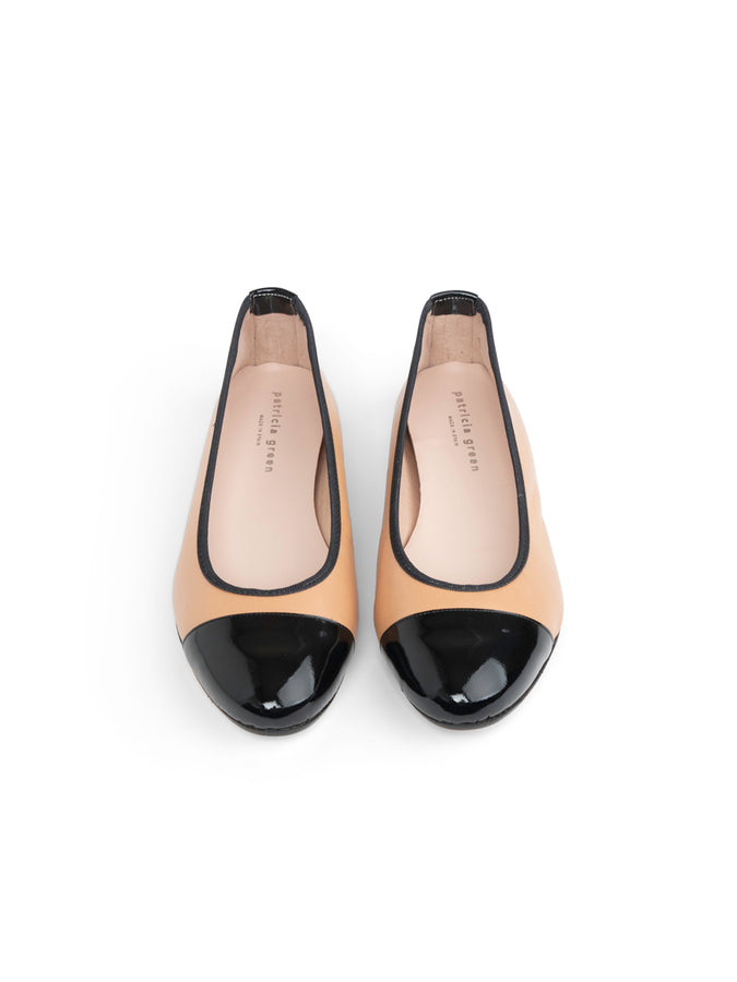 Slip into our most comfortable ballet flat to date. Textured versatile tweed in shades of black, navy and grey, or smooth nappa leather both finished with a patent leather cap toe. A hidden wedge adds just the right amount of lift to make them ultra comfortable. You'll be running around all day in these with ease!