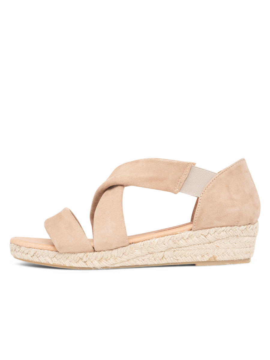 - Suede upper with comfort fit elastic strap