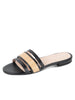 Classically beautiful, this three strap flat leather sandal with raffia detailing is a sophisticated casual sandal.