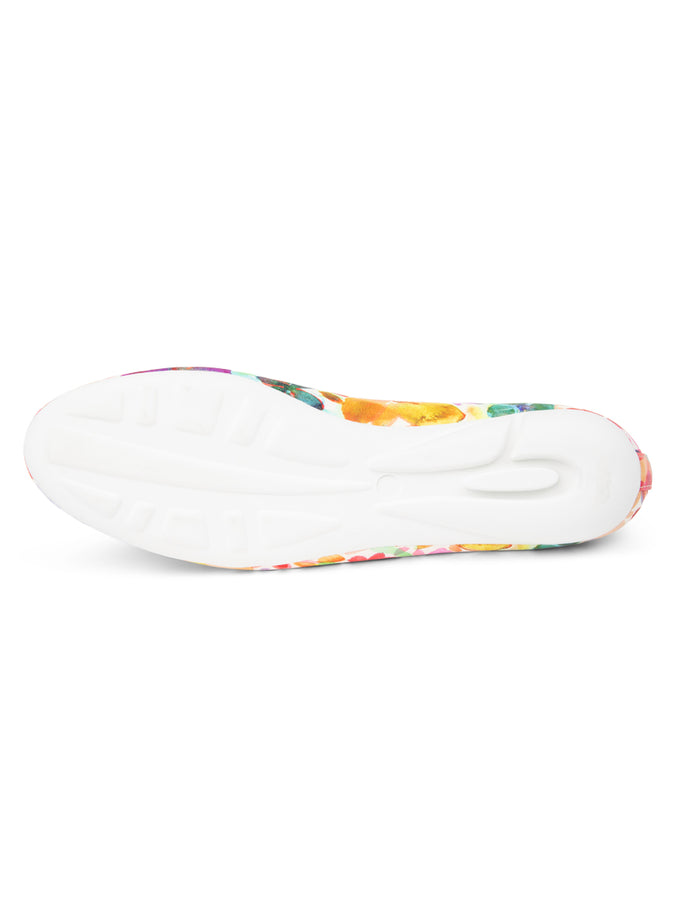 Handmade in Spain on our perfected signature last, this floral ballet flat features supple printed leather in a vibrant multi-color design. With bunion-friendly coverage, a flexible sole, and an adjustable bow for a personalized fit, it offers timeless Paul Mayer comfort with a fresh, feminine twist.