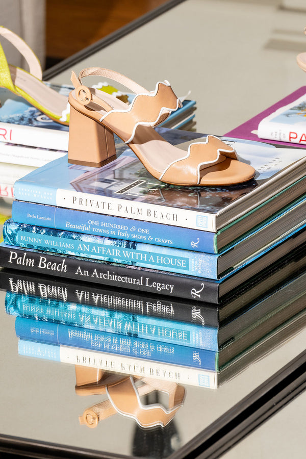 Elevate your wardrobe with the Palm Beach Piped Sandal in timeless nude with elegant white trim. This newest addition to Patricia Green's iconic Palm Beach collection combines effortless sophistication with all-day comfort. Designed with a chic block heel and crafted to perfection, this versatile sandal is ideal for any occasion. Step out in style with a handcrafted classic that exudes modern elegance.