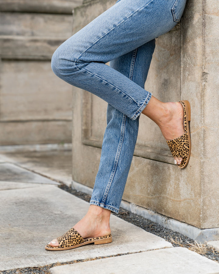 Make a statement in these leopard haircalf slide sandals. They are as versatile as they are comfortable. As soon as we slipped these sandals on, we knew they had to be a part of the collection. Leopard goes with everything, and the way that flatter and cradle the foot is simply stunning!