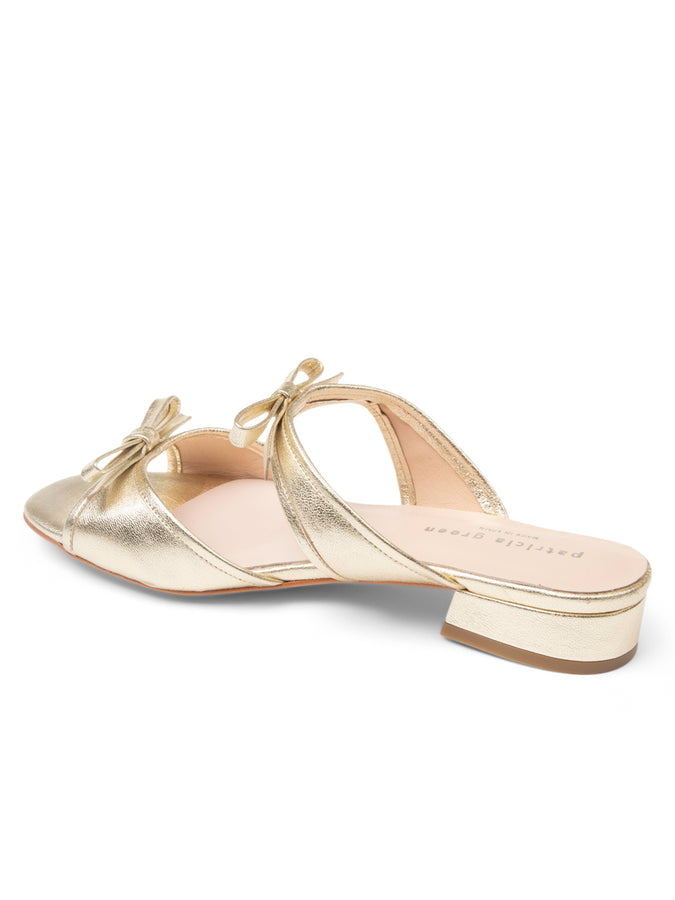 Introducing the newest addition to our beloved Bettye collection: the Bettye Bow Flat Sandal, a chic, low-heeled slip-on designed for effortless elegance all season long. Handcrafted in Spain, this sandal brings together feminine detailing and everyday comfort with Patricia Green’s signature artisanal touch. The supple metallic leather adds a soft, luminous glow, while the double-bow straps create a refined, dressy touch that feels both playful and polished.