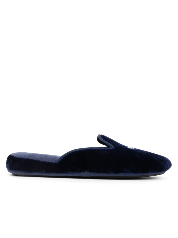 Patricia Green Women’s Queen Bee Embroidered Velvet Slipper in Navy Velvet