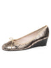 A neutral with a twist. The noble leather wedge adds just the right amount of glistening shine while pairing seamlessly with anything and everything. A rounded toe on a low comfortable wedge heel.