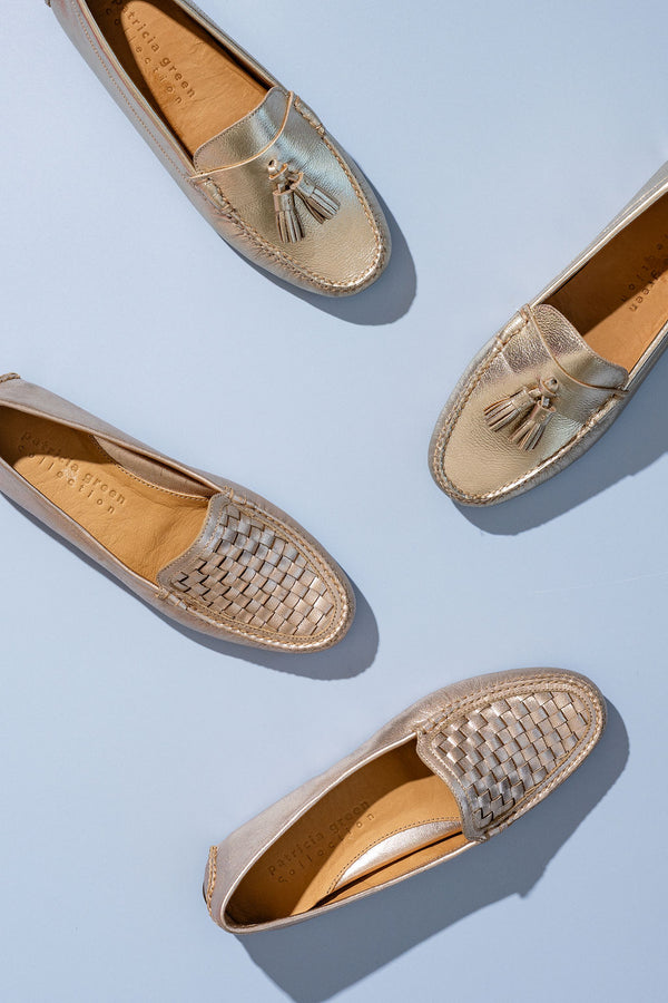 Patricia Green Women’s Jordan Tassel Driver in Gold Leather