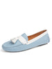 Patricia Green Women’s Jordan Tassel Driver in Sky Blue/White Leather