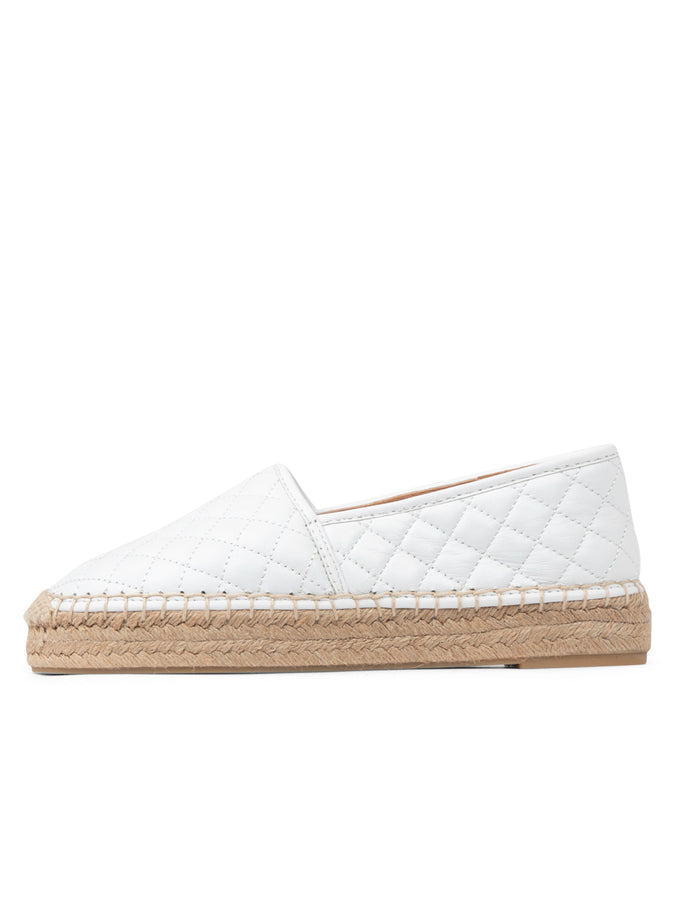 Available in classic white or shimmering gold, the Abigail Quilted Slip-On Espadrille blends versatility and elegance, making it a must-have addition to your wardrobe.