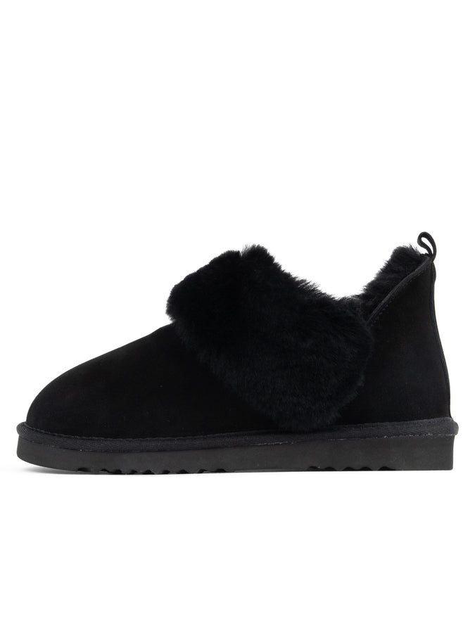 Slip into luxury in this fabulous shearling bootie with rubber sole. A comfortable slipper that can also be worn outdoors thanks to its sturdy rubber sole. We'll be wearing these day to night for cozy days at home.