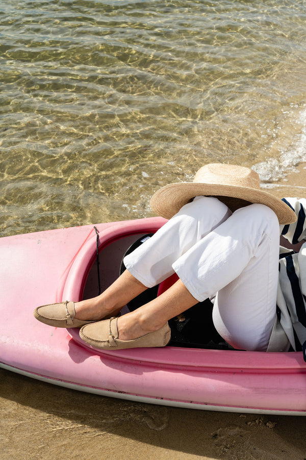 A classic, refined loafer with minimalist horse bit hardware detailing. The Caroline is composed of supple suede and the handcrafted craftsmanship of these loafers makes them like no other. Our wardrobe workhorse.