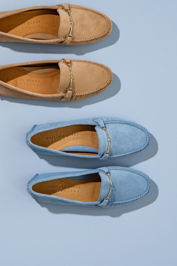 Patricia Green Women’s Caroline Horsebit Driver in Tan Suede