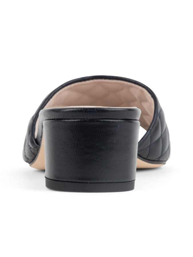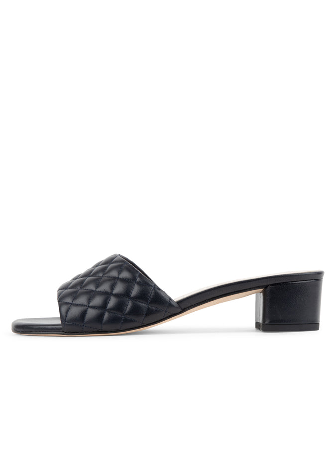 Paul Mayer’s iconic quilted leather gets a fresh update for the season on a low heeled slide sandal. A sturdy block heel makes these easy to wear from day to night! A refined silhouette that is comfortable and stylish on a moderate heel height.